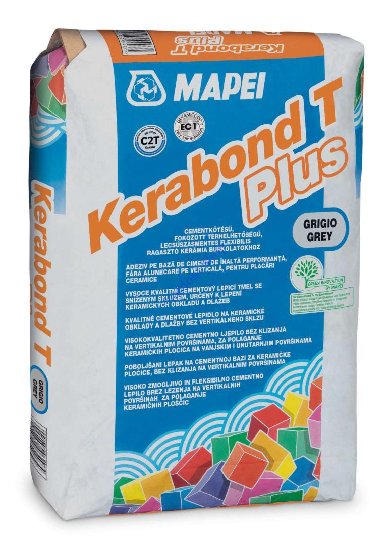 A Mapei Kerabond T Plus egy csúcskategóriás, cementkötésű ragasztóhabarcs, amely tökéletes választás kerámia burkolólapok, például egyszer vagy kétszer égetett, gres, klinker lapok ragasztásához beltérben és fedett kültéri területeken, mint például teraszok, erkélyek és függőfolyosók.